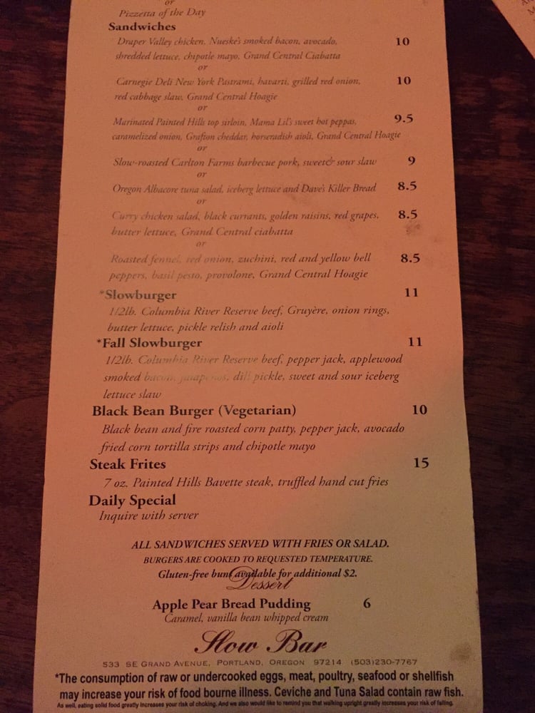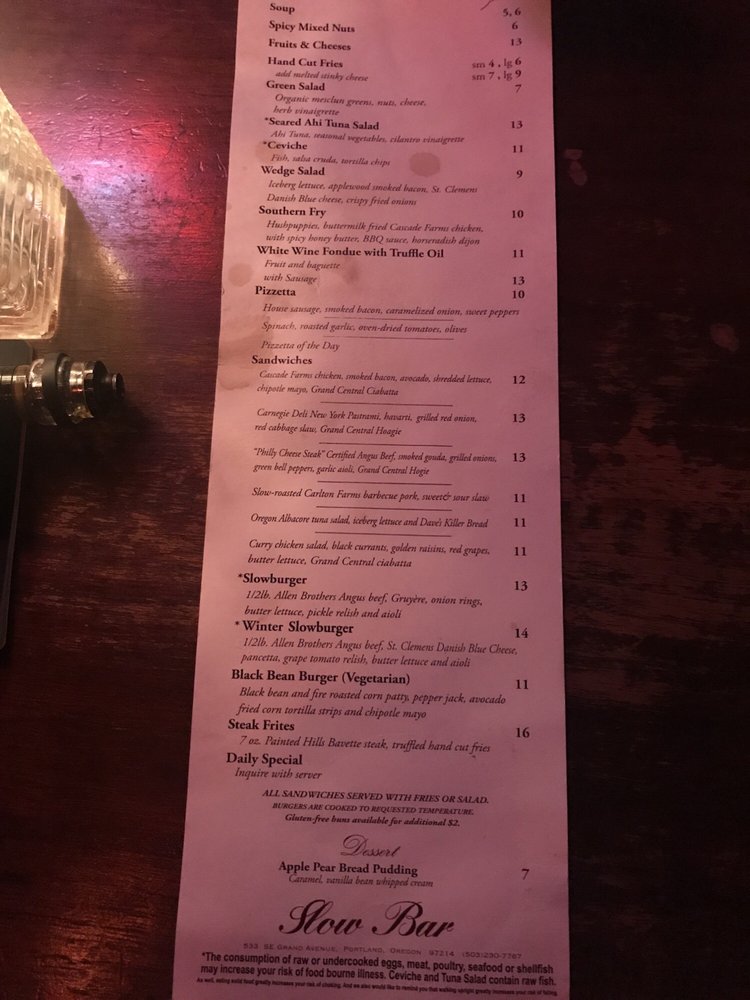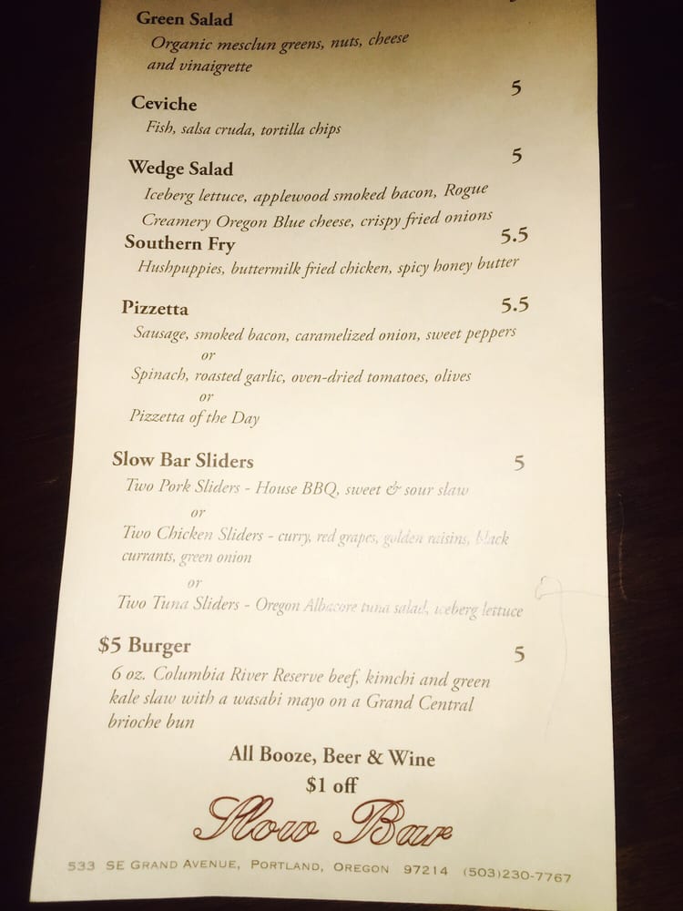Slow Bar, located at 533 SE Grand Ave in Portland, is a popular lounge known for its delicious burgers and casual atmosphere. Offering a variety of menu options, including many vegetarian choices, Slow Bar accommodates all dietary preferences. It provides amenities like outdoor seating, waiter service, free Wi-Fi, and even accepts cryptocurrency as payment. With a full bar and happy hour specials, it's the perfect spot for groups to gather and enjoy good food and drinks. Customers rave about the friendly staff and excellent service, with particular praise for the Slow burger, described as a Portland favorite. Whether you're looking for a late-night snack or a satisfying meal, Slow Bar is a must-visit destination for a memorable dining experience.
